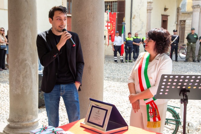 L’Amministrazione comunale di Tromello, nella giornata di lunedì 2 giugno 2025 alle ore 10:30, ha conferito la targa per la Civica Benemerenza per meriti culturali al poeta Biscaldi, classe 1999. Un riconoscimento che in pochi ricevono a quest’età.