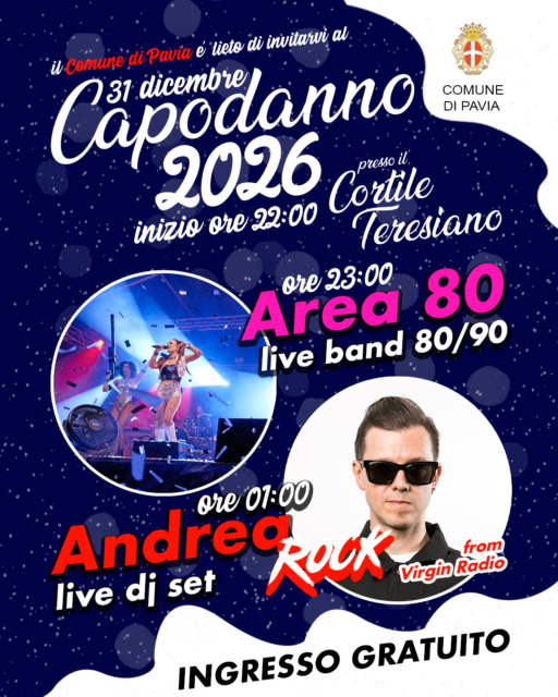 Sarà una notte di musica, condivisione e rispetto delle regole quella con cui Pavia si prepara ad accogliere il 2026. Il Comune propone un Capodanno all’insegna della musica dal vivo scegliendo come palcoscenico uno dei luoghi più suggestivi della città: il Cortile Teresiano dell’Università, pronto a trasformarsi per una sera in una grande piazza musicale a cielo aperto.