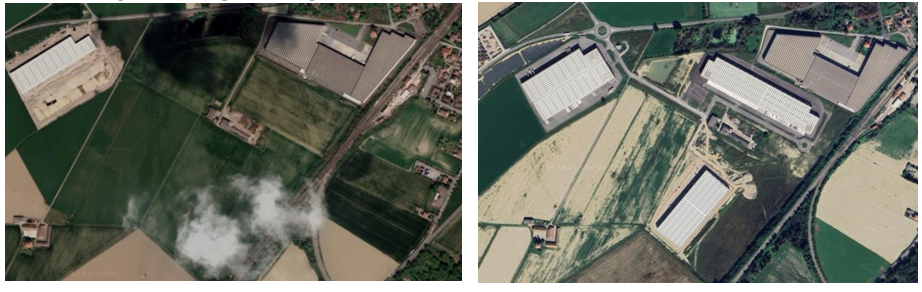 Il consumo di suolo a Bressana Bottarone (ph © Google / Airbus / CNES / Maxar Technologies 2023-25)