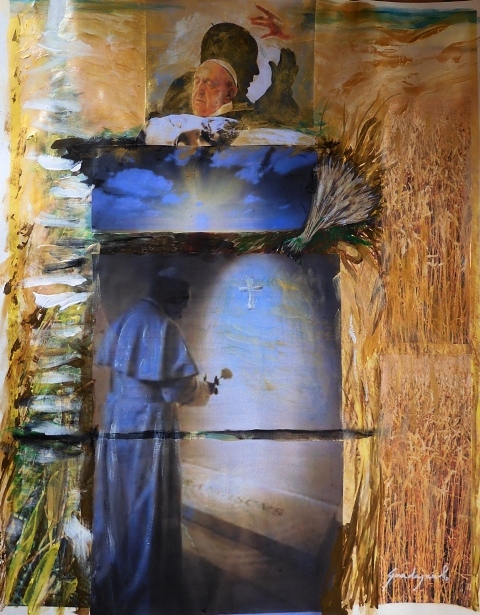 Le opere si propongono come un vero e proprio itinerario spirituale, dove ogni dipinto rappresenta un momento o un valore del pontificato. Attraverso colori, collage e tecniche miste, Guadagnuolo traduce in immagini le parole e i gesti del Papa, rendendo l’arte un ponte tra contemporaneità e iconografia sacra.