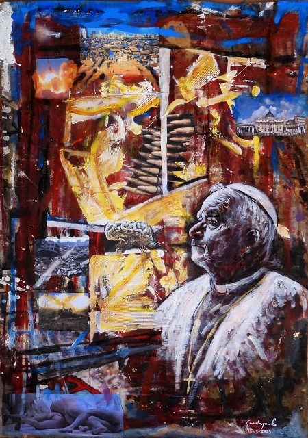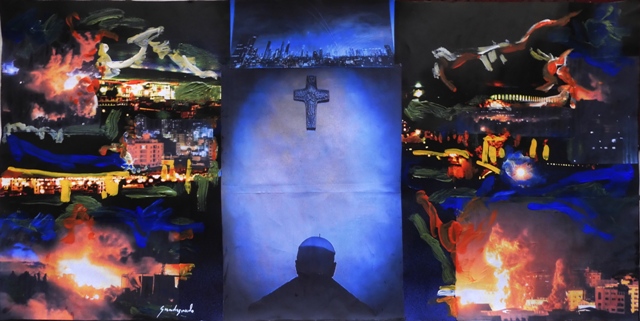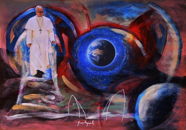 Le opere si propongono come un vero e proprio itinerario spirituale, dove ogni dipinto rappresenta un momento o un valore del pontificato. Attraverso colori, collage e tecniche miste, Guadagnuolo traduce in immagini le parole e i gesti del Papa, rendendo l’arte un ponte tra contemporaneità e iconografia sacra.