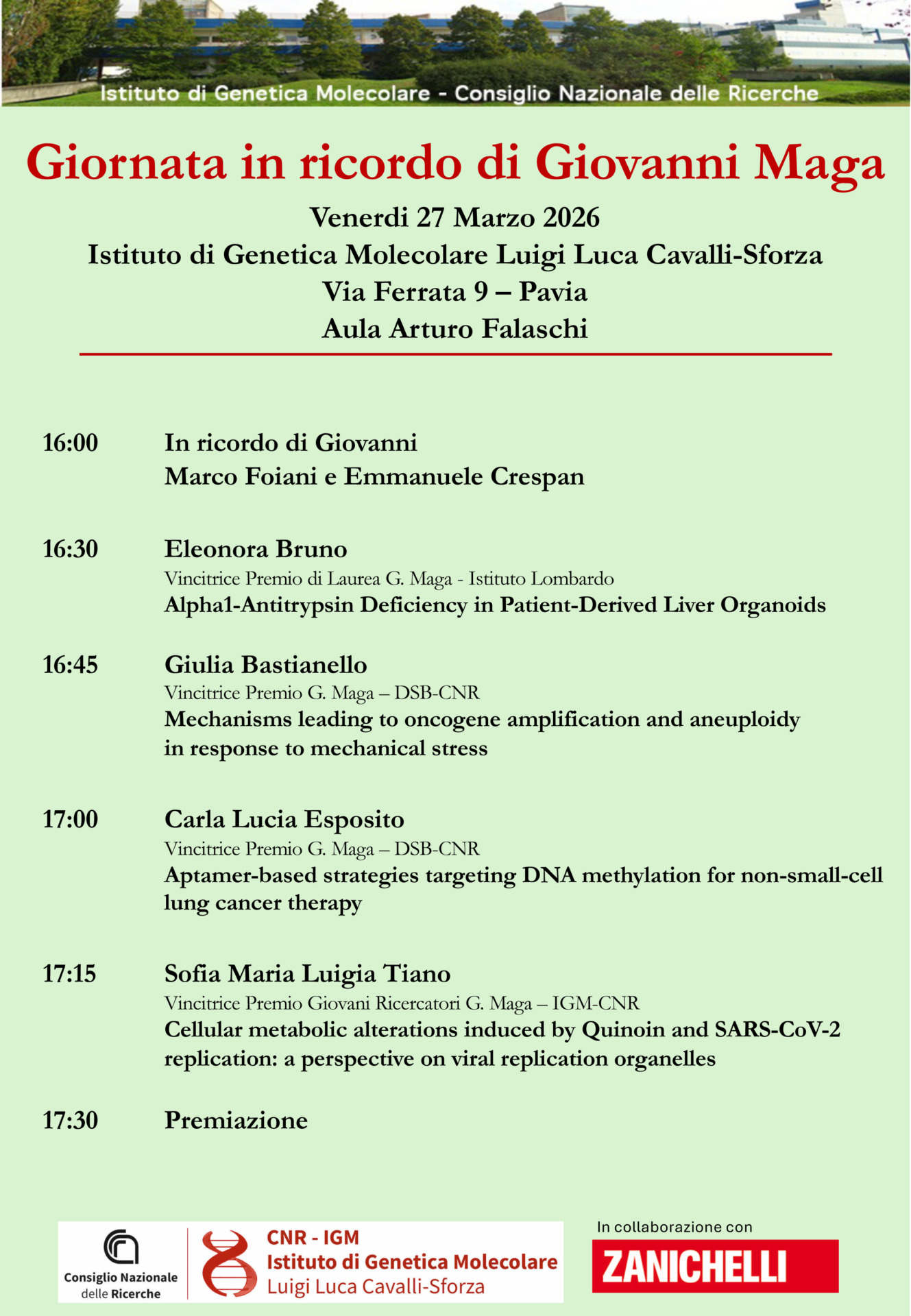 Il 27 marzo 2026 il CNR-IGM di Pavia ricorderà Giovanni Maga, illustre virologo e divulgatore, a un anno dalla scomparsa. L’evento celebrerà la sua eredità scientifica attraverso la premiazione di giovani ricercatori d’eccellenza nei campi della virologia e della genetica.