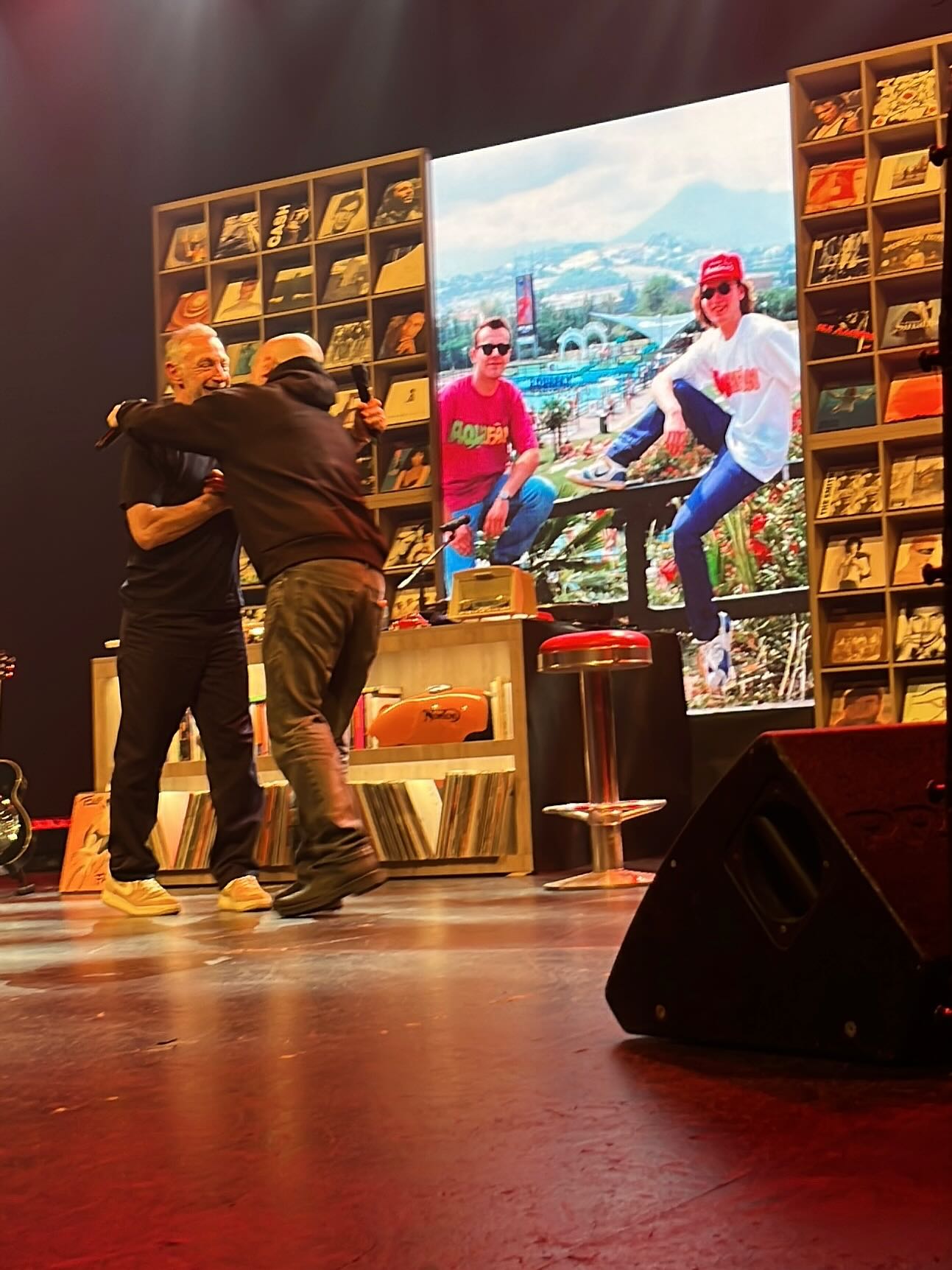 Durante la serata, Linus ha scherzato con il pubblico: “Speriamo che Max non sia a Miami”, ha detto, riferendosi all’amico e collega di lunga data. Ma la battuta si è trasformata in un momento indimenticabile: Max Pezzali è salito a sorpresa sul palco, accolto da un’ovazione. Insieme a lui e a Matteo Curti, Linus ha rivissuto episodi e ricordi condivisi, tra musica, risate e la complicità che da anni li lega.