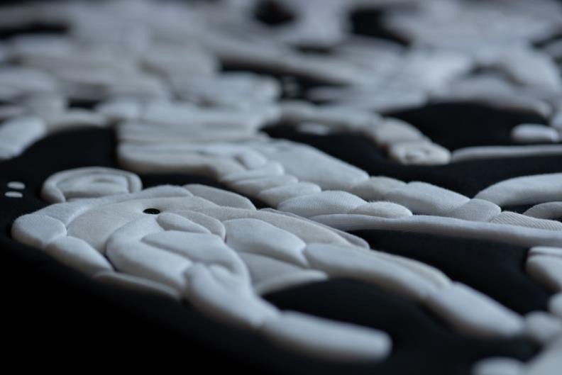 L’opera rappresenta anche un potente manifesto etico. Utilizzando i tessuti come pelle per le sue forme, Bressani lancia una denuncia silenziosa contro la fast fashion, trasformando il riciclo in un principio artistico fondamentale. Rispetto ai lavori precedenti, qui la staticità lascia il posto a un’energia vibrante: i colori dell’inverno e il candore della neve emergono da un nero profondo, quasi a voler simulare il respiro affannato e il battito accelerato di un atleta nel momento decisivo della gara.