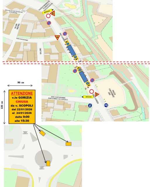 Il Comune raccomanda il rispetto della segnaletica temporanea, ricordando che la violazione delle norme comporterà l’applicazione delle sanzioni previste dal Codice della Strada e dai regolamenti collegati.