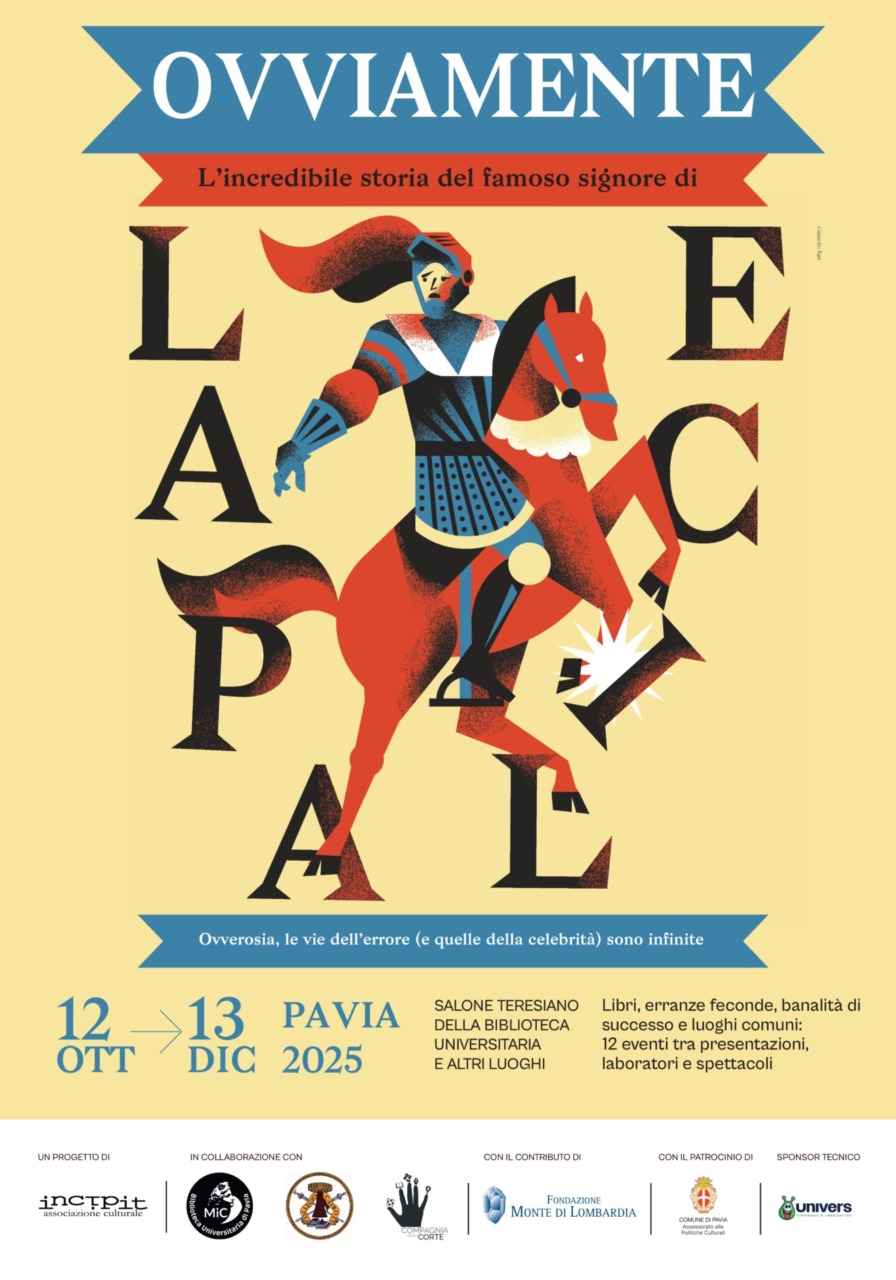 A Pavia prende vita la rassegna “Ovviamente. La leggenda del signor di Lapalisse”, che esplora come errori e ovvietà possano diventare creatività e comicità. Tra incontri, laboratori e spettacoli, il pubblico scoprirà storie, parole e dettagli banali che hanno fatto la storia e divertono ancora oggi.