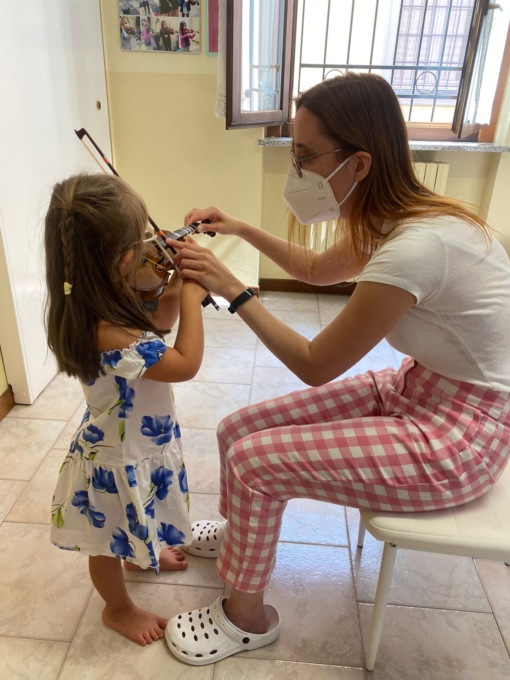 Il suo metodo di lavoro punta sul divertimento e sulla motivazione coinvolgendo, come da filosofia Suzuki, tutta la famiglia del bambino in quella che sarà prima di tutto un’esperienza di crescita e di vita.