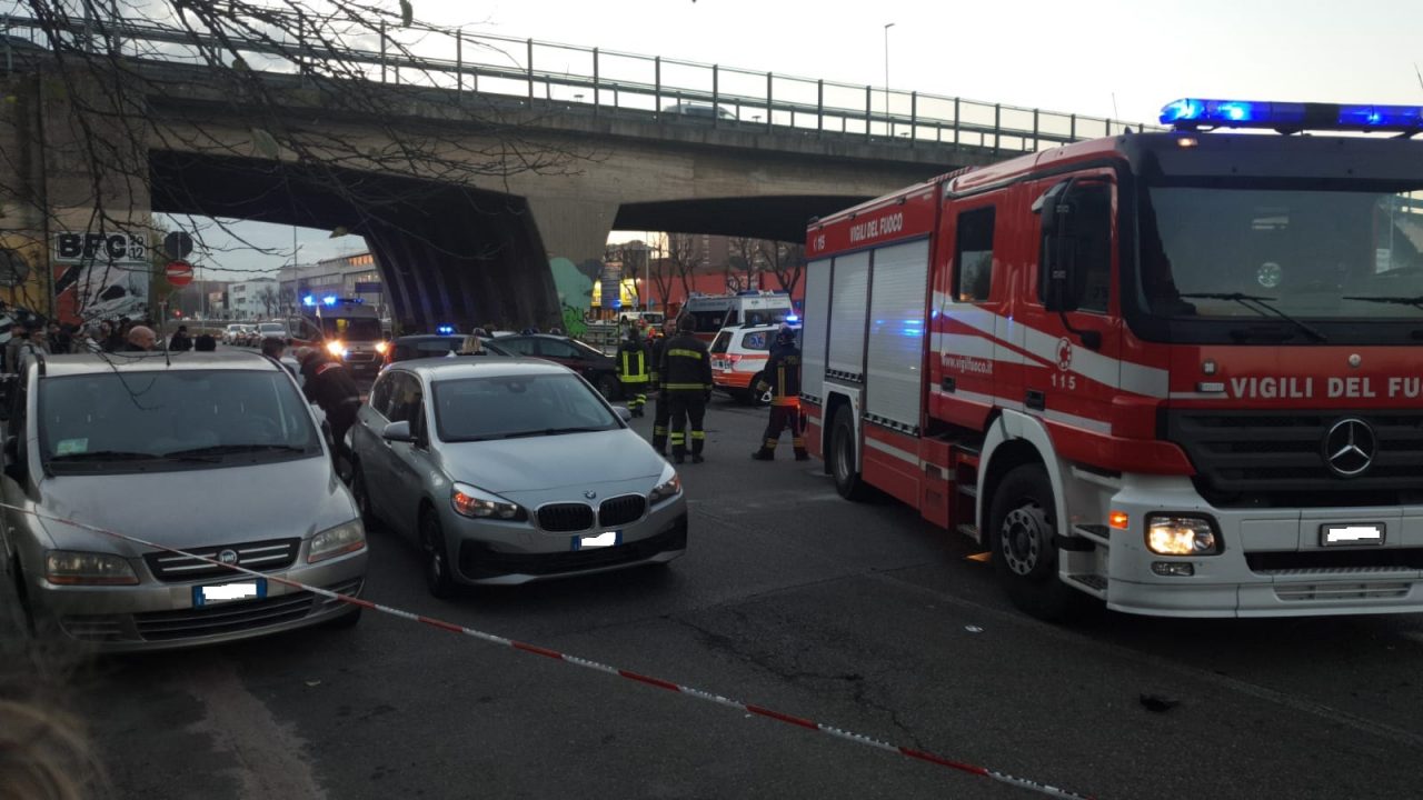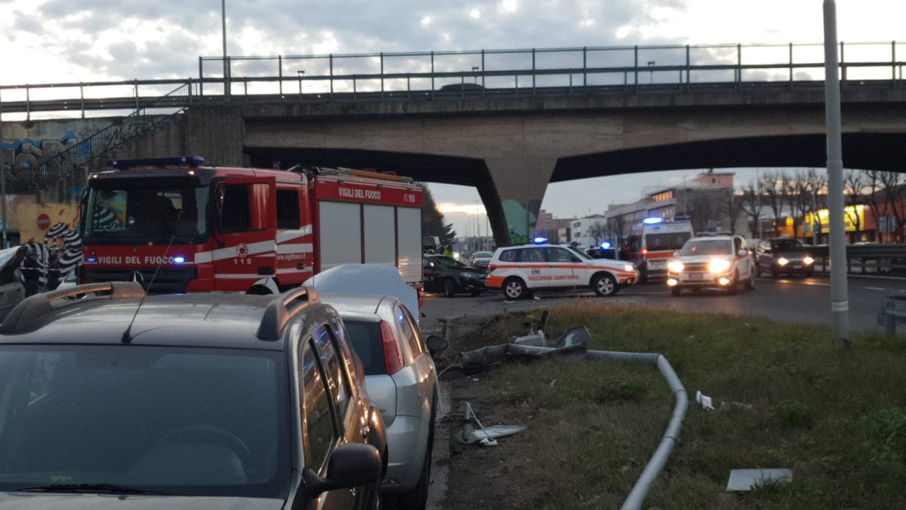 Lungo la pensilina ha travolto quattro persone: due ragazzi di 16 anni, un 23enne e un 26enne. Nello schianto ha travolto anche il palo della fermata dell’autobus e una palo della luce, ha poi sfondato lo spartitraffico finendo nel controviale, in via di Vittorio, colpendo nel testa-coda diverse auto parcheggiate.
