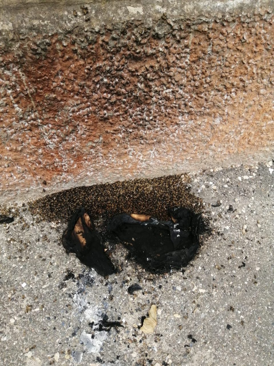 Nella mattinata di ieri un individuo irresponsabile ha interrotto per sempre il loro viaggio, posizionando sotto al punto in cui erano momentaneamente in sosta, un frammento di cartone incendiato. A causa del fumo che le ha stordite, una ad una le api si sono lasciate cadere, finendo proprio sul fuoco acceso e morendo carbonizzate.