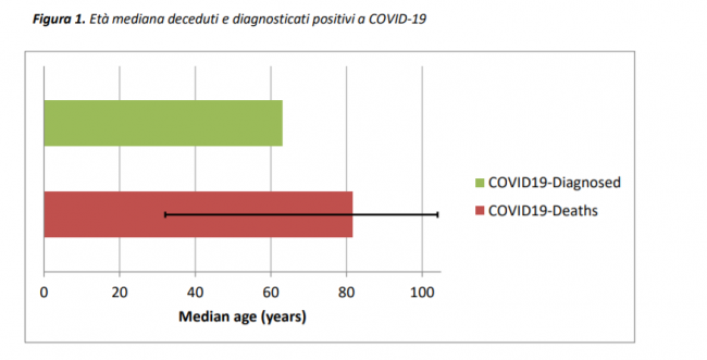 Figura 1. Età mediana deceduti e diagnosticati positivi a COVID-19
