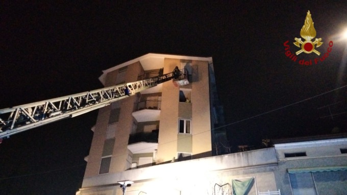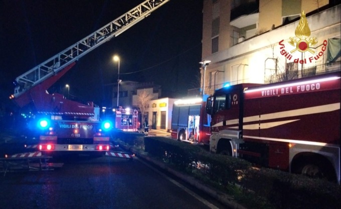 Incendio in condominio a Vigevano nella serata di lunedì 3 gennaio 2022: residenti evacuati dai piani alti con l’autoscala.