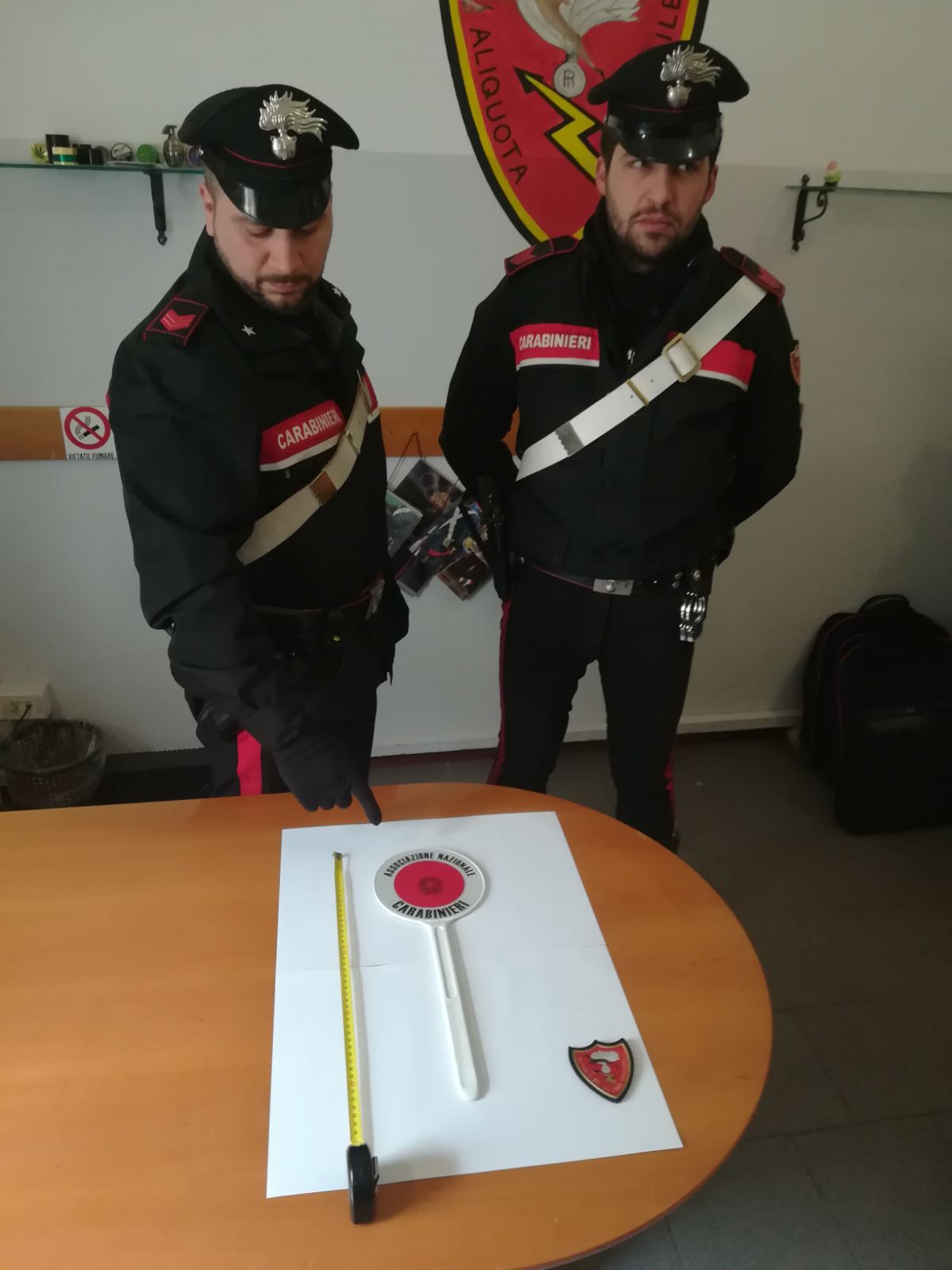 Fermato durante un controllo, a bordo della sua auto a aveva una paletta contraffatta con tecniche di serigrafia riportante il logo dell'Associazione Nazionale Carabinieri .
