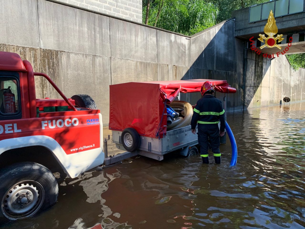 Sottopasso allagato a Castelletto di Branduzzo: sul posto i Vigili del Fuoco con un’idrovora. Intervento durato circa due ore.