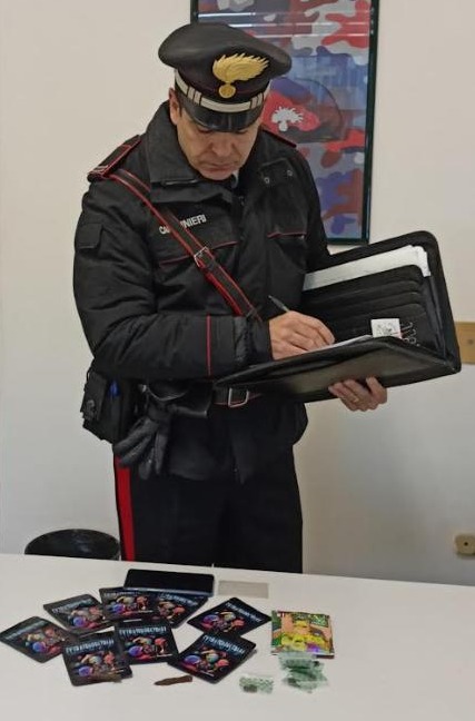 Oltre al grammo di hashish appena ceduto, i Carabinieri hanno rinvenuto altri 21 grammi di stupefacente. La droga era stata meticolosamente suddivisa in dosi e nascosta all’interno di nove bustine di figurine della serie “Extraterrestrial”: un espediente creativo per mimetizzare lo spaccio, che però non è servito a evitare il sequestro.