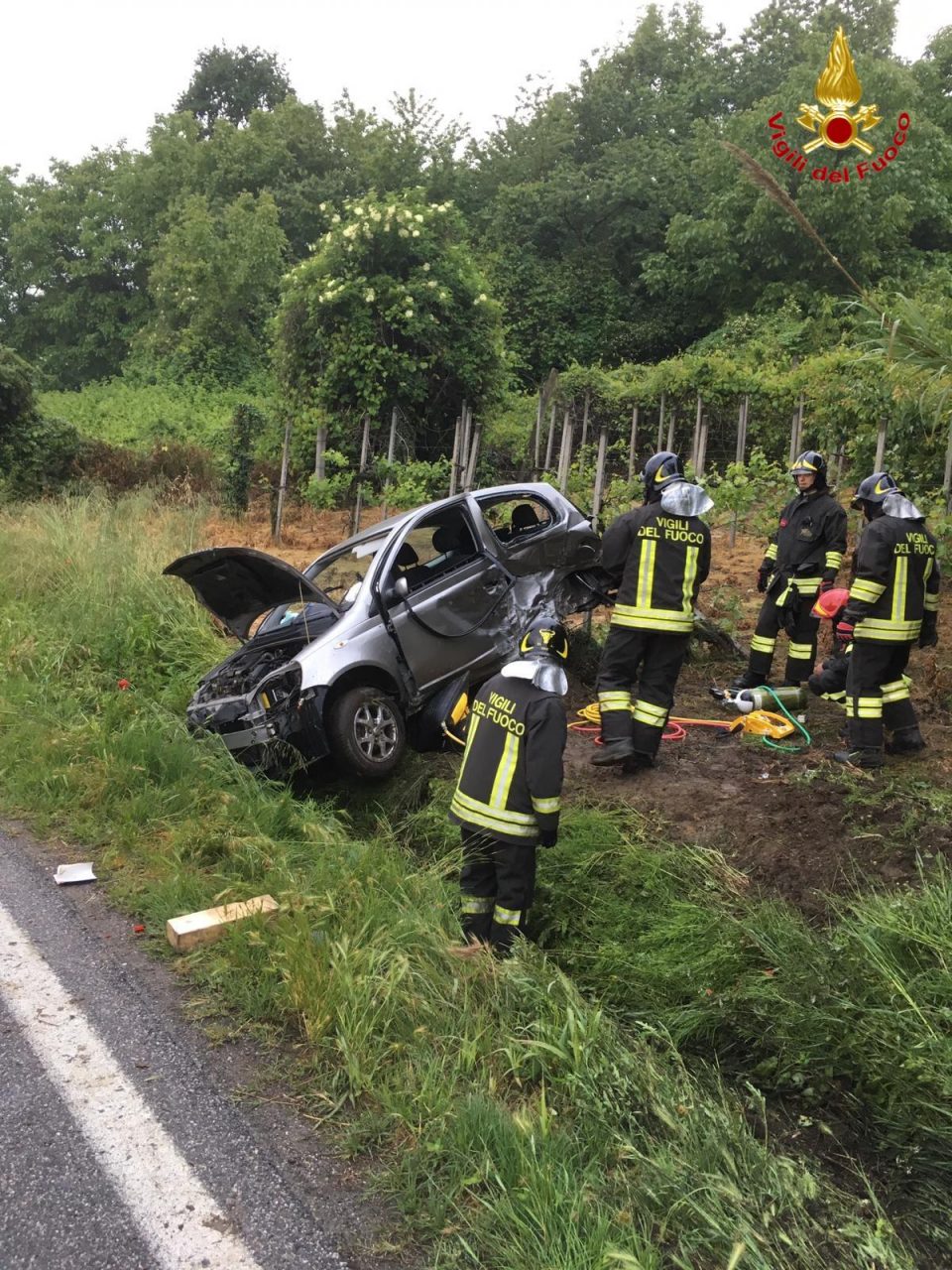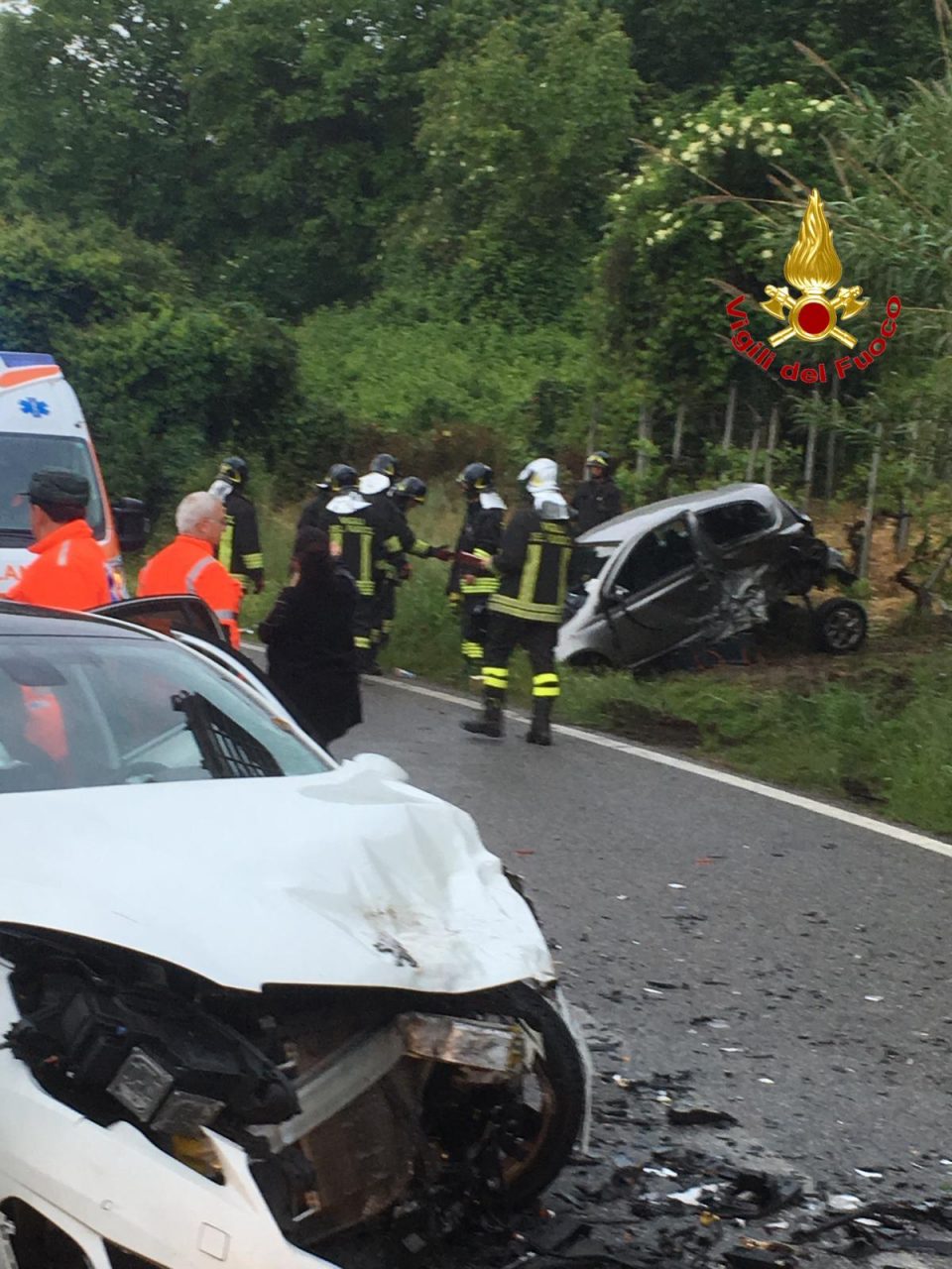 Violento schianto tra due auto intorno alle 19 a San Colombano al Lambro: tre feriti, uno libero da Vigili del Fuoco.