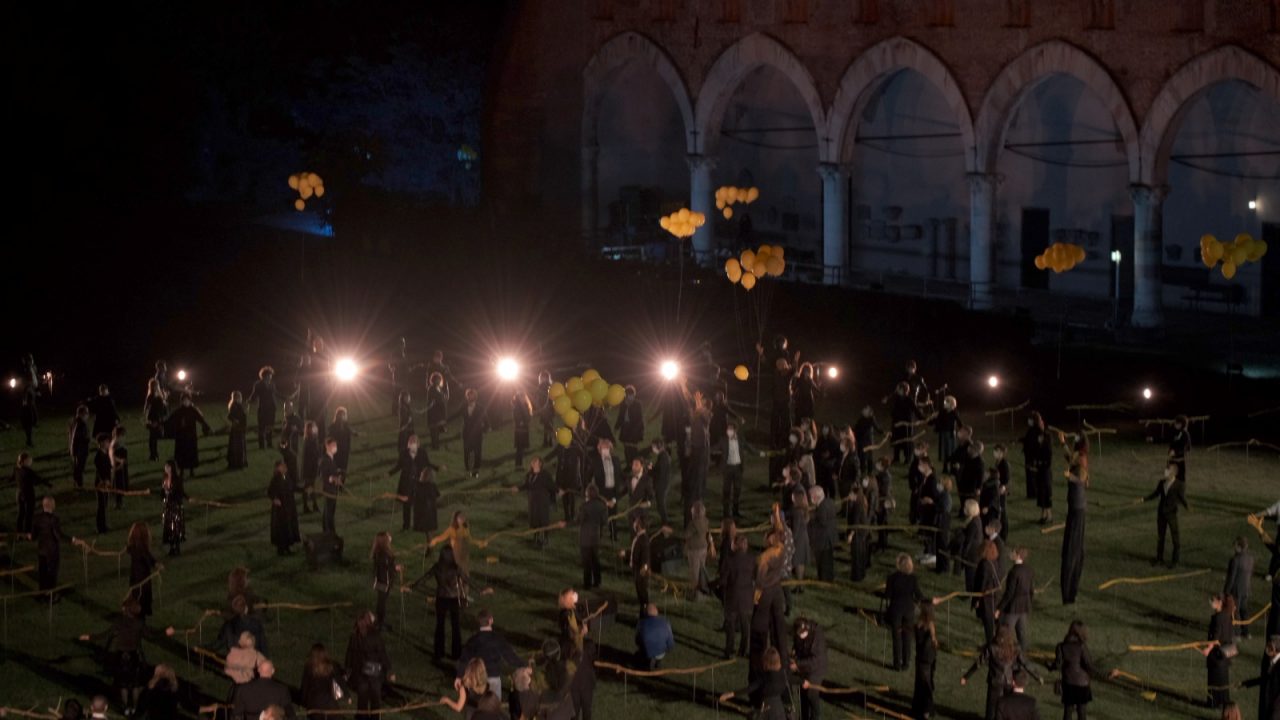 Tra le persone coinvolte nelle attività di questi luoghi di comunità sono stati inoltre selezionati i 98 cittadini che, insieme ai 98 artisti – tutti adeguatamente preparati e distanziati nella più rigorosa osservanza delle norme anti Covid-19 – hanno poi dato vita alla performance collettiva al Castello Visconteo.