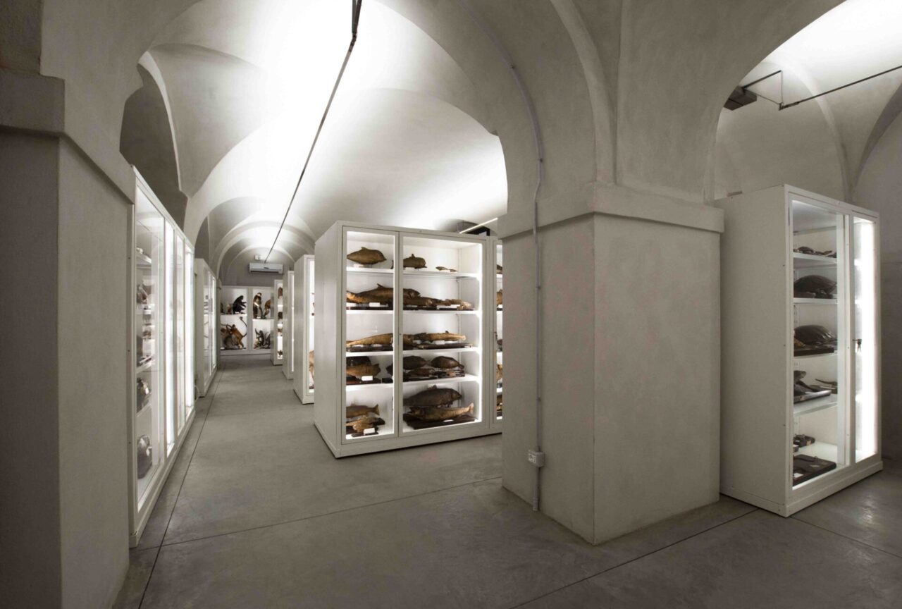 La progettazione garantisce la conservazione preventiva dei reperti grazie a un sistema di climatizzazione. Gli armadi metallici, con doppia anta in vetro temperato, sono provvisti di illuminazione interna abbinata a sensori di movimento. L’ambiente è suddiviso in quattro sale: le prime due ospitano le collezioni di zoologia e le successive sono dedicate alla collezione di anatomia comparata con scheletri interi e crani.