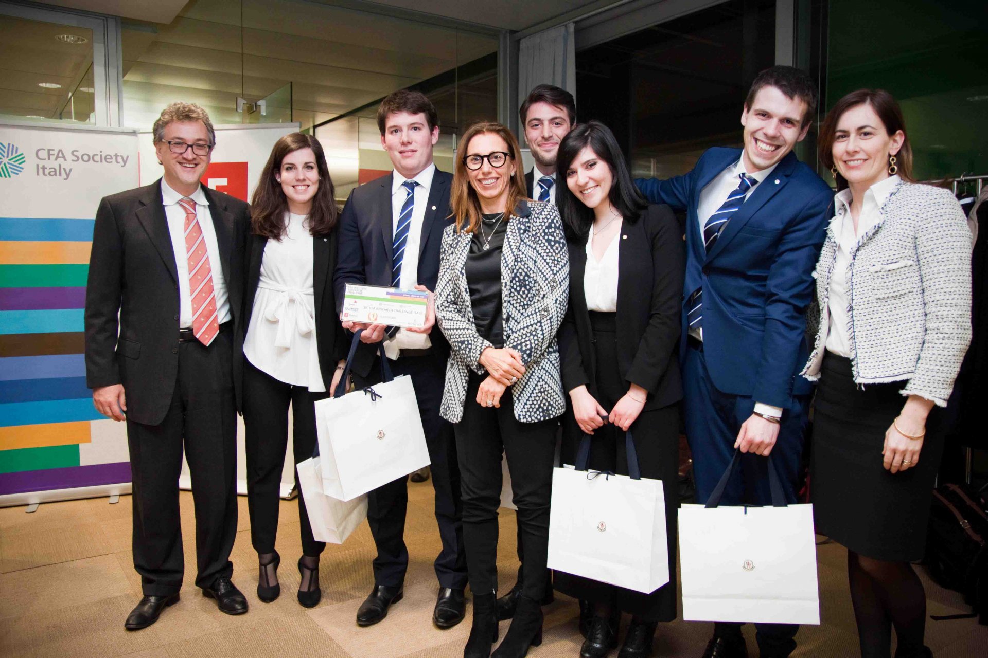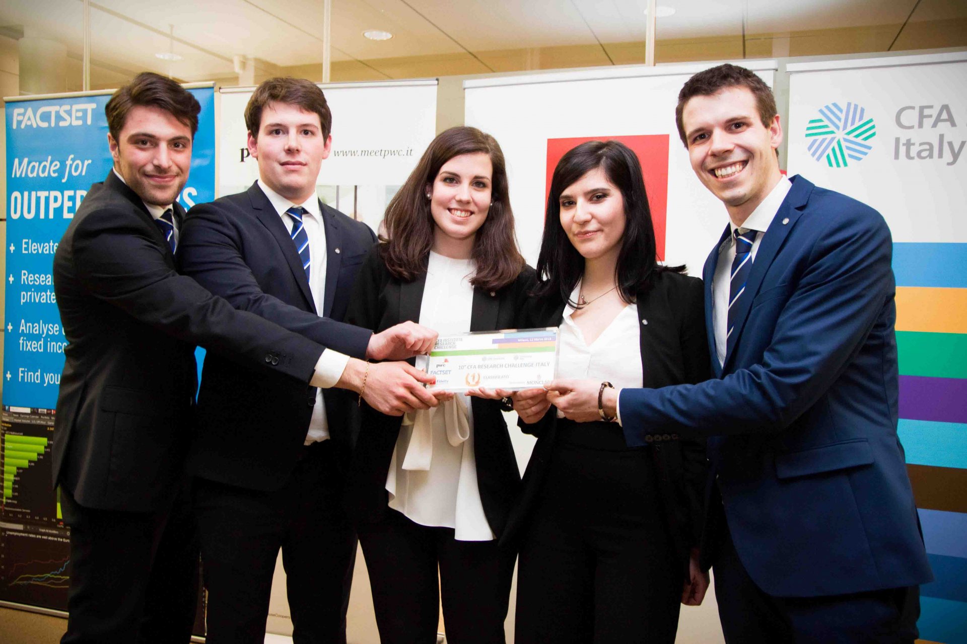L’evento di premiazione si è svolto lunedì 12 marzo 2018, presso la sede milanese di PwC, e ha visto il coinvolgimento di nove atenei, 44 studenti e oltre 30 professionisti.  Alla fase italiana, coordinata da CFA Society Italy, hanno partecipato i team rappresentanti le seguenti università: Cattolica e Politecnico di Milano, Ca’ Foscari di Venezia, Università di Modena e Reggio Emilia, Libera Università di Bolzano, Università di Pavia e Università Politecnica delle Marche, Università di Trieste e Università di Brescia. Dopo la consegna del report scritto, gli studenti hanno presentato il loro studio a una giuria di sei esperti del settore finanziario: Erika Andreetta (PwC), Mauro Bragiola (Citi), Alberto Chiandetti, CFA (Fidelity), Patrizia Saviolo, CFA (GEA Consulenti Associati), Nicola Ricolfi (Nextam Partners) e Chiara Rotelli (Mediobanca). Il secondo e terzo posto sono stati assegnati rispettivamente al Politecnico di Milano e all’Università Politecnica delle Marche.