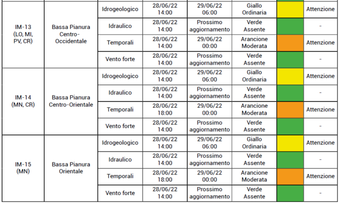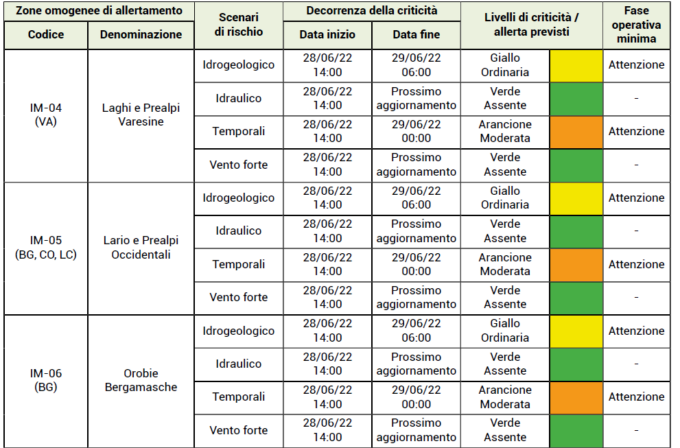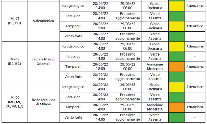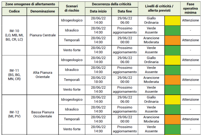 Nella gallery il dettaglio delle allerte di Regione Lombardia: