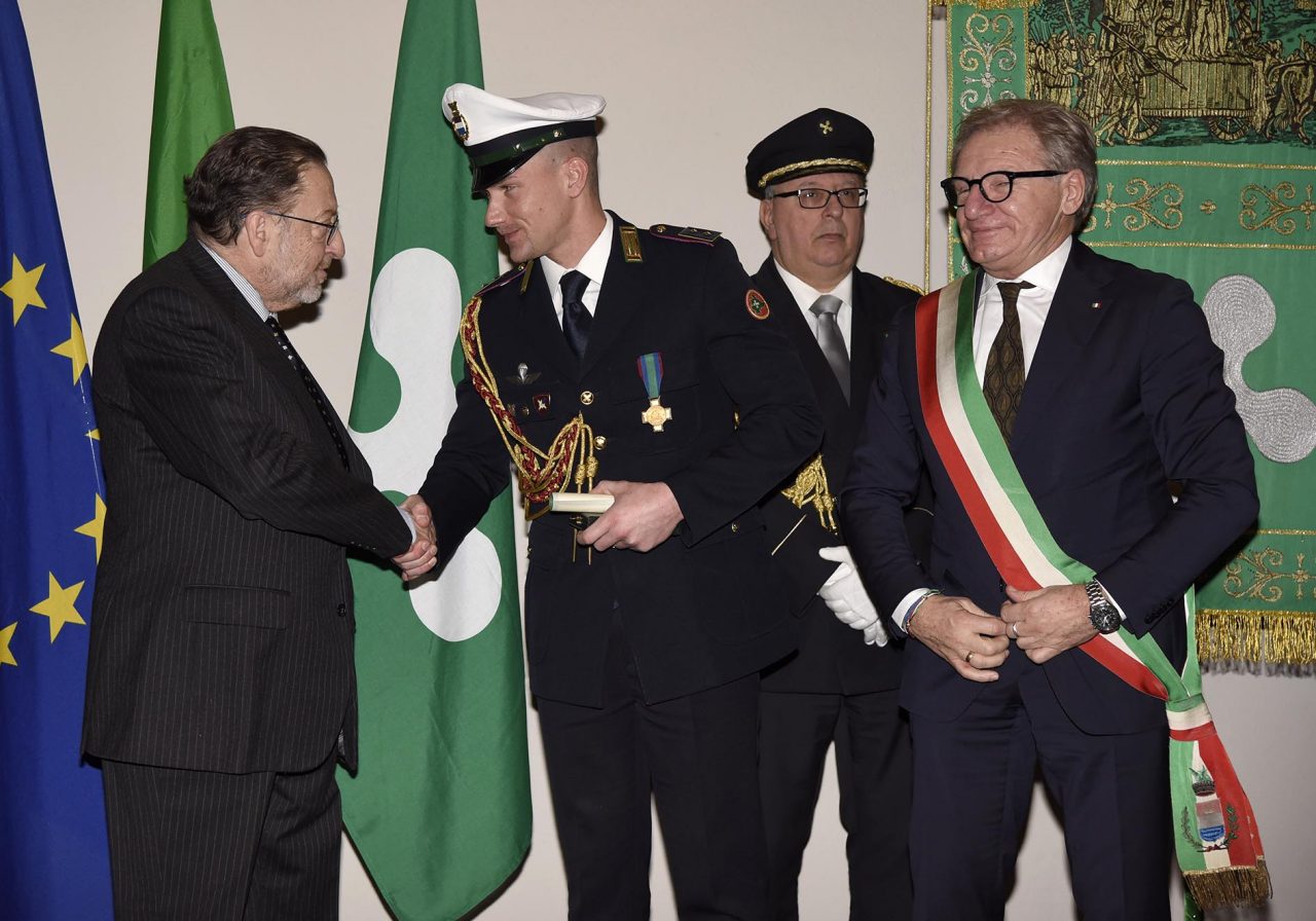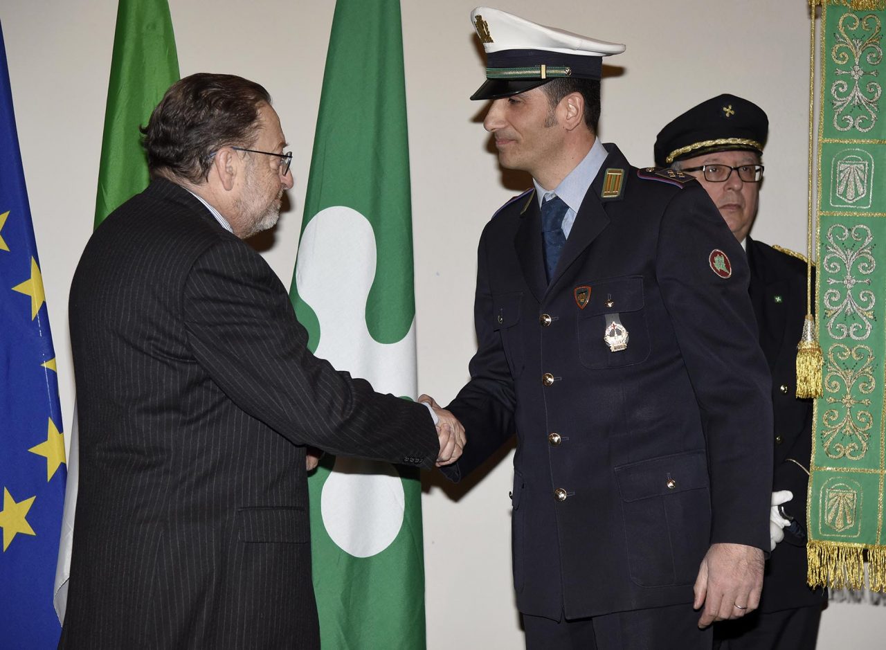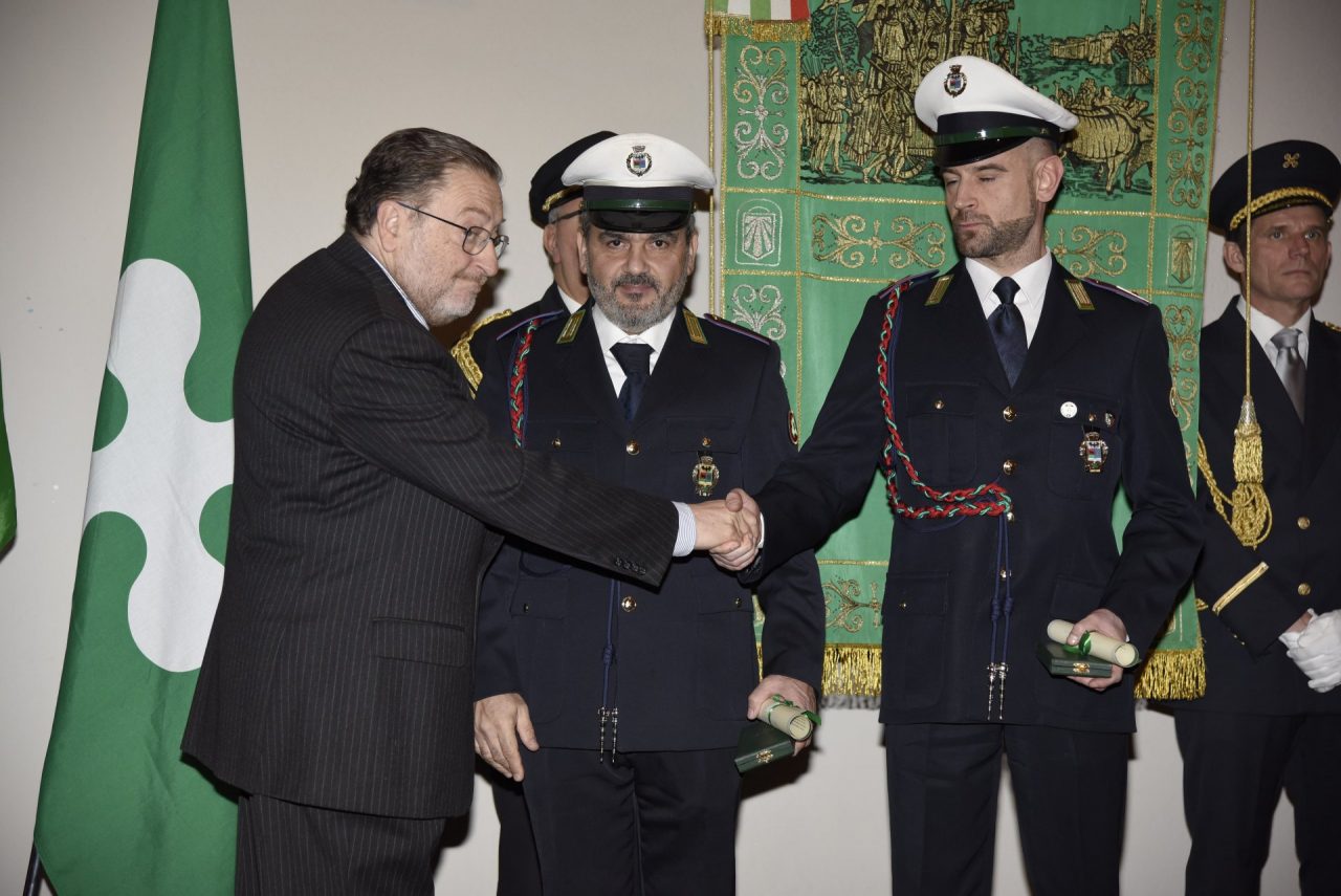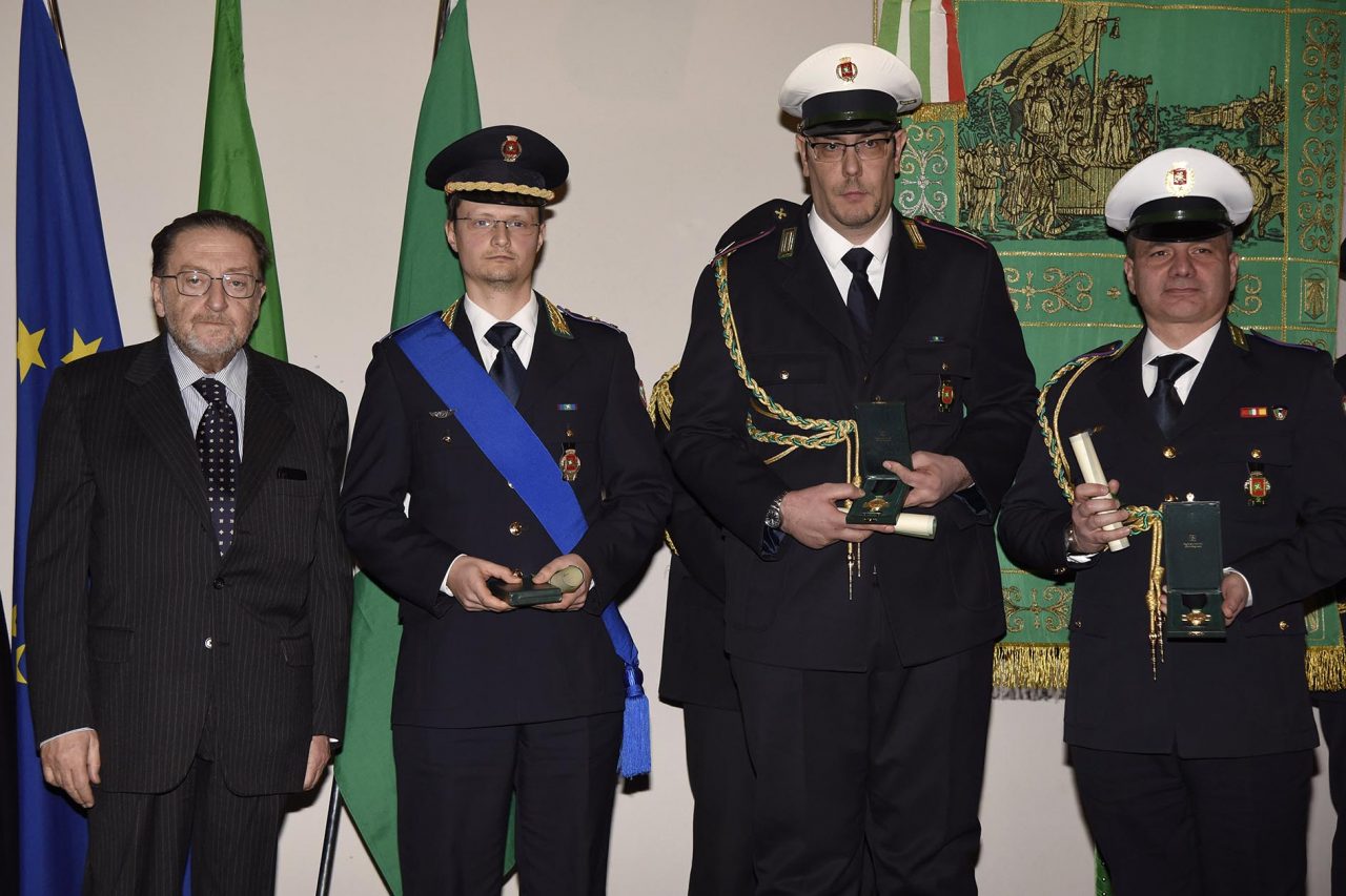 L’assessore alla Sicurezza, Immigrazione e Polizia locale della Regione Lombardia Riccardo De Corato ha consegnato le onorificenze ai 26 operatori di Polizia locale che si sono distinti in particolari episodi avvenuti nel 2018. La cerimonia si è tenuta oggi, lunedì 20 gennaio 2020, al Castello Visconteo di Pavia.