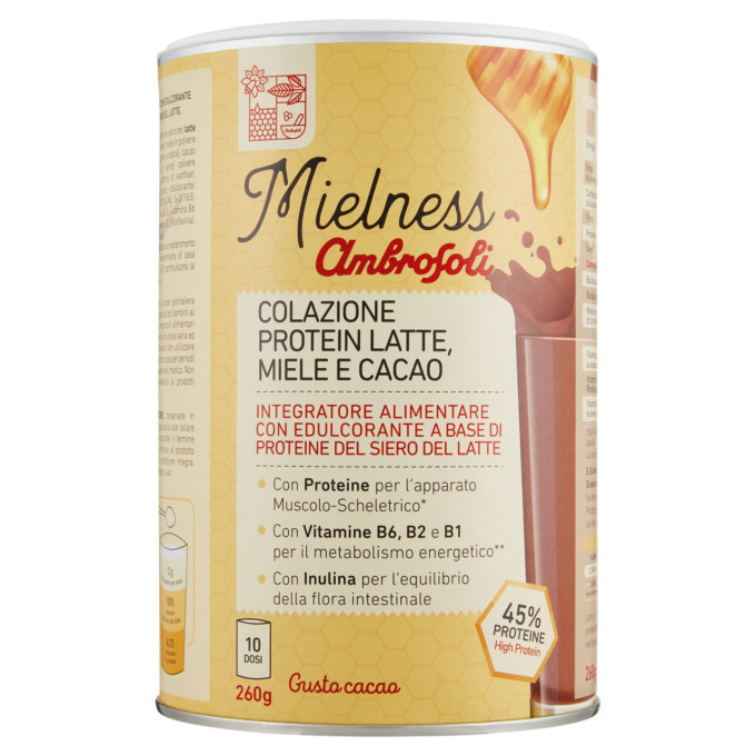 “Mielness – aggiunge Ambrosoli – è una linea di integratori che abbiamo studiato con grande attenzione. L’ingrediente che in sinergia valorizza il prodotto è il nostro miele: a seconda degli obiettivi che ci siamo posti, a quest’ultimo abbiamo poi aggiunto altre componenti accuratamente selezionate. In particolare, i consumatori possono scegliere tra il Multivitaminico Energy, confezionato in flaconcini, perfetto prima dell’attività sportiva o dopo uno sforzo, per superare i momenti di stanchezza e i cali di concentrazione; Immuno-Vitamin, sottoforma di sciroppo, che rinforza le difese immunitarie, ideale in autunno, quando si avvicina il picco delle malattie alle vie respiratorie. Infine, Colazione Protein, integratore alimentare a base di miele e proteine del siero del latte disponibile in due gusti, il grande classico latte e miele e l’altrettanto goloso cacao e miele. I due prodotti sono perfetti a colazione, disciolti in acqua o latte”.