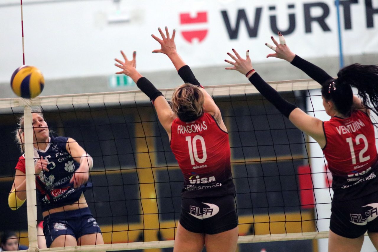 Capitan Trabucchi al servizio mette in difficoltà la ricezione avversaria nell’avvio del terzo parziale ed è lei stessa a ben innescare Coulibaly dalla seconda linea per il 3-1. Le padrone di casa cercano di stare in scia (10-10), ma le ducali pigiano sul l’accelerazione e con un doppio punto di Crotti, in primo tempo ed al servizio, prima sorpassano (11-12) e poi allungano (12-17). Il finale anche in questo caso è solo Florens: capitan Trabucchi firma l’ace del 19-12, Milocco piazza (21-13), ace di Coulibaly (22-13) e chiude Mo in attacco per 14-25.