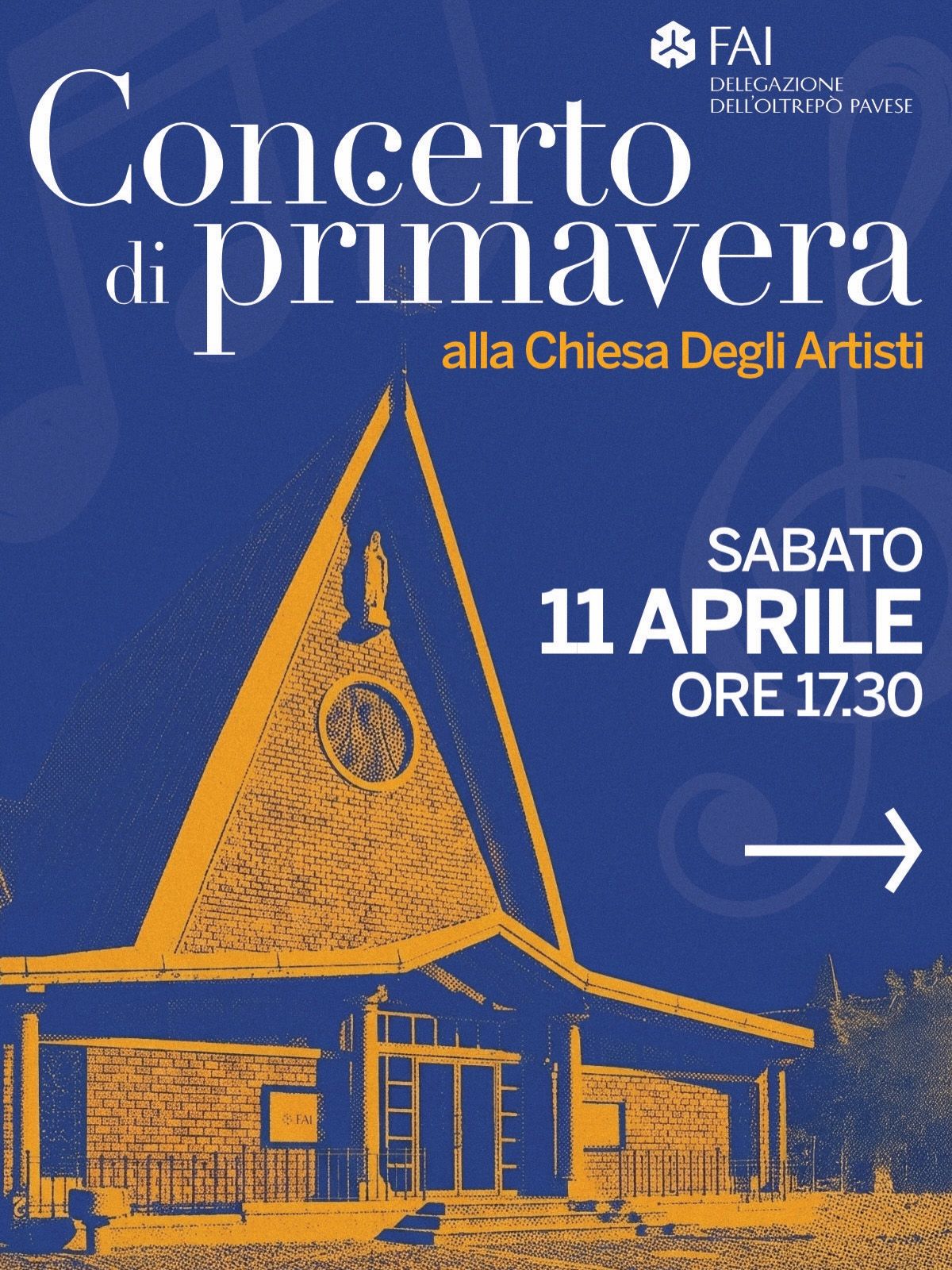 Sabato 11 aprile 2026, la Delegazione FAI Oltrepò Pavese organizza a Voghera il tradizionale Concerto di Primavera. L’evento si terrà presso la Chiesa di San Vittore, nota come “Chiesa degli artisti” per le sue opere del secondo Novecento. Il programma prevede una visita guidata alle 16:30, seguita alle 17:30 dal concerto della Polifonica Vogherese A. Gavina, con musiche di autori come Verdi e Puccini. L’iniziativa unisce arte contemporanea e grande musica; il contributo parte da 8€ per i soci FAI e 10€ per i non iscritti. Non è necessaria la prenotazione. Maggiori info CLICCANDO QUI.