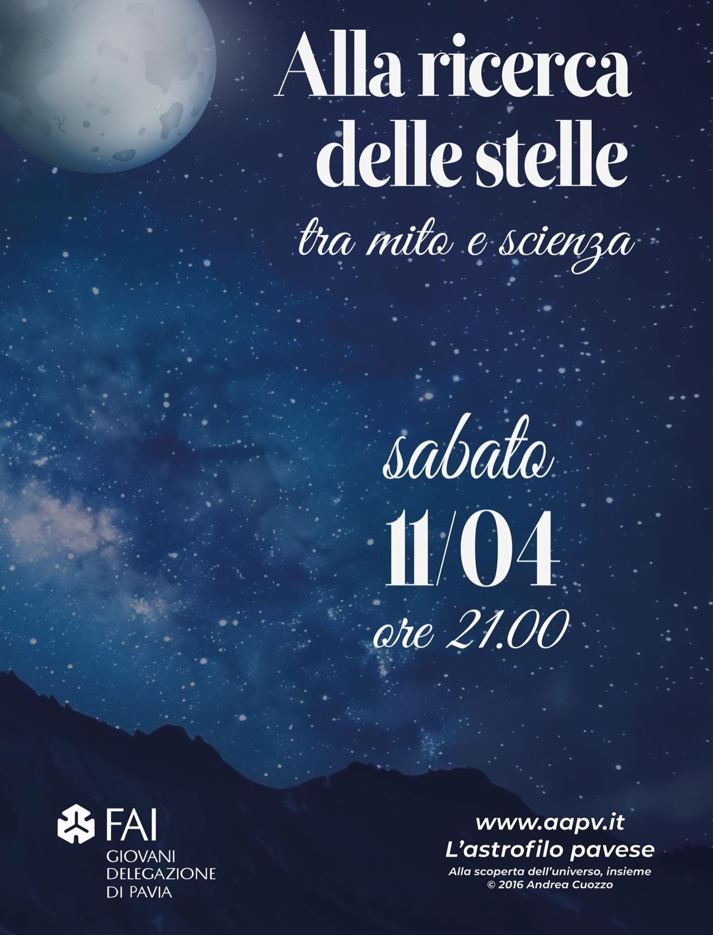 Sabato 11 aprile 2026, alle ore 21:00, il FAI Giovani Pavia presenta “Alla ricerca delle stelle”, una serata di osservazione astronomica a Roncaro. L’evento coniuga narrazione mitologica e spiegazione scientifica, guidando i partecipanti tra le costellazioni primaverili in una zona con scarso inquinamento luminoso. L’iniziativa, aperta a tutti, mira a valorizzare il patrimonio paesaggistico pavese. È richiesta la prenotazione online CLICCANDO QUI: il contributo è di 8€ per i soci FAI e 10€ per i non iscritti. Possibilità di iscriversi al FAI Giovani in loco (18-35 anni) a quota agevolata.