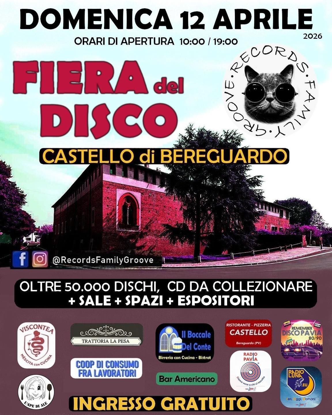 Domenica 12 aprile 2026, il Castello di Bereguardo ospita la terza Fiera del Disco, appuntamento imperdibile per gli amanti del vinile e del collezionismo. Dalle 10:00 alle 19:00, i visitatori potranno acquistare, scambiare o vendere dischi tra numerosi stand di esperti. L’evento, a ingresso libero, non è solo un mercato: prevede DJ set, dirette curate da Radio Pavia e interviste. La manifestazione, che punta a diventare un festival musicale di riferimento nel pavese, offre anche l’occasione per scoprire l’enogastronomia locale in una cornice storica suggestiva e facilmente raggiungibile. Maggiori info CLICCANDO QUI.