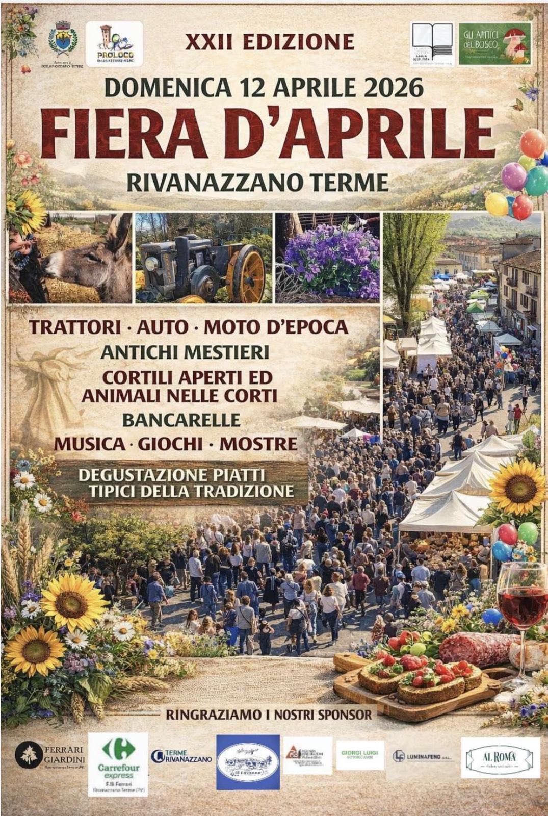 Domenica 12 aprile 2026, Rivanazzano Terme ospita la 22° Fiera d’Aprile, storica manifestazione che celebra le tradizioni contadine e artigianali dell’Oltrepò Pavese. Il borgo si animerà con esposizioni di trattori e auto d’epoca, rievocazioni di antichi mestieri e cortili aperti con animali da fattoria. Il programma include musica dal vivo, giochi, mostre fotografiche e bancarelle di prodotti locali. Non mancherà l’aspetto gastronomico, con la degustazione di piatti tipici del territorio. Un evento conviviale e gratuito, ideale per riscoprire le radici rurali della provincia. Maggiori info CLICCANDO QUI.