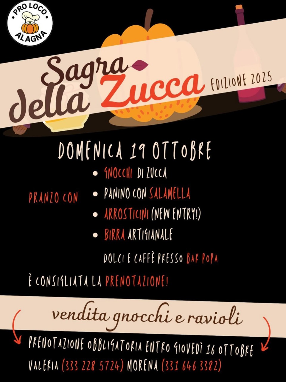 L’autunno in Lomellina profuma di zucca e di piatti genuini: torna ad Alagna la Sagra della Zucca 2025, un appuntamento imperdibile organizzato dalla Pro Loco di Alagna per celebrare uno dei prodotti più amati della stagione. La manifestazione si terrà domenica 19 ottobre 2025, con un ricco menù, atmosfera di festa e tante specialità da gustare in compagnia. Maggiori info CLICCANDO QUI.
