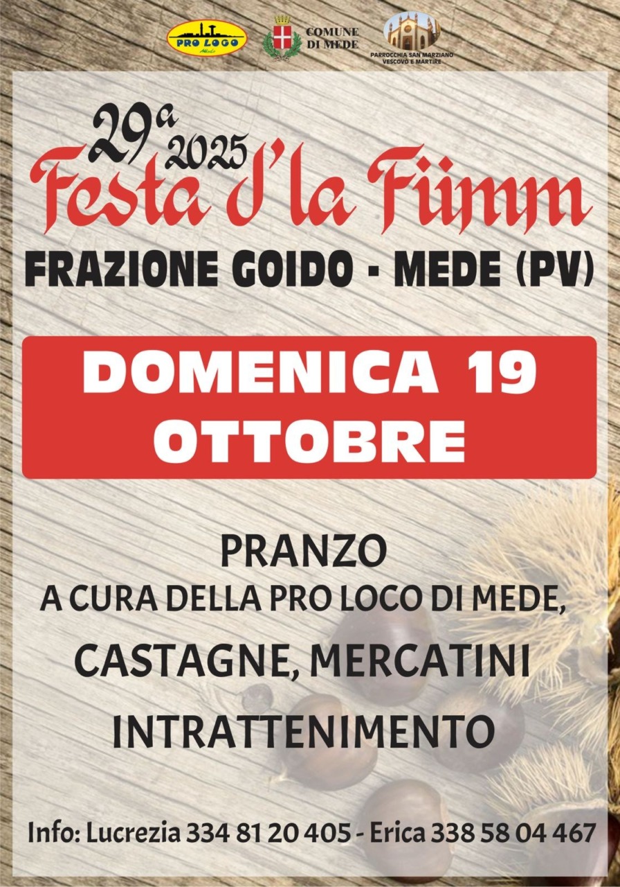 Domenica 19 ottobre sarà una giornata densa di appuntamenti per grandi e piccoli. Dalle ore 9:00 apriranno i mercatini, che animeranno la frazione per tutta la giornata, accompagnati dal profumo delle caldarroste, preparate ininterrottamente dagli organizzatori. A mezzogiorno sarà possibile gustare il pranzo a cura della Pro Loco di Mede, mentre alle ore 12:30 è previsto l’arrivo delle macchine storiche del “Gruppo Classica Città di Cairoli”. Alle ore 15:30 si terrà l’inaugurazione e benedizione del defibrillatore donato alla comunità, un momento significativo di partecipazione e solidarietà. Il pomeriggio proseguirà con animazione per bambini e le musiche e i canti di Mirko, che intratterranno il pubblico fino a sera. Maggiori info CLICCANDO QUI.