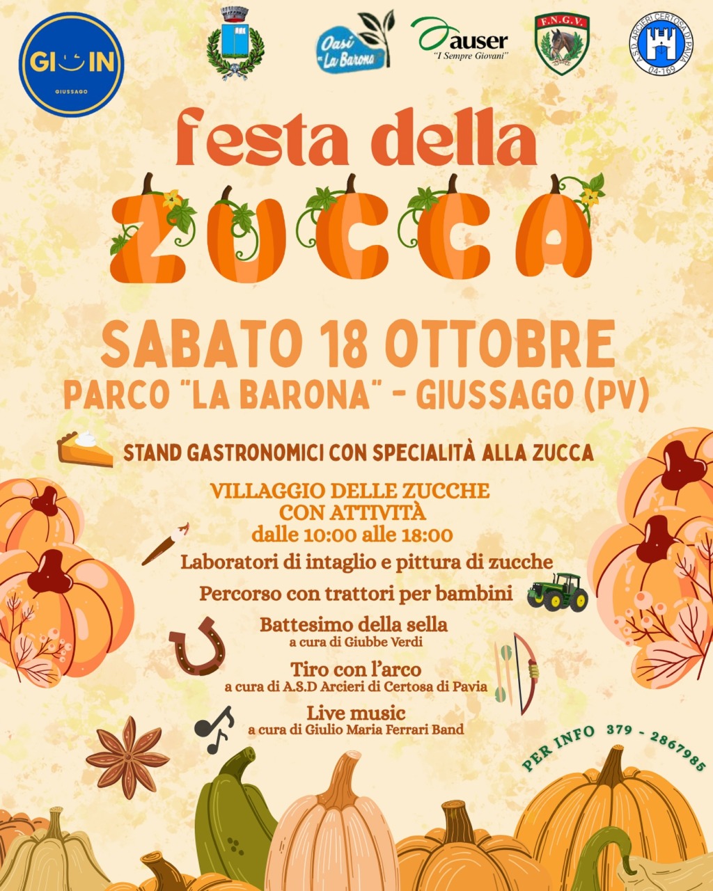 Il Parco “La Barona” di Giussago (PV) ospita la nuova edizione della Festa della Zucca, un evento autunnale dedicato al gusto e alle tradizioni del territorio pavese. Protagonista assoluta della giornata sarà la zucca, regina indiscussa della stagione, celebrata con un ricco programma di iniziative per grandi e piccini. Dalle 10:00 alle 18:00 il Villaggio delle Zucche accoglierà i visitatori con attività creative e laboratori di intaglio e pittura di zucche, oltre a un divertente percorso con trattori per bambini. Non mancheranno le esperienze a contatto con la natura, come il battesimo della sella, curato da Giubbe Verdi, e le prove di tiro con l’arco a cura dell’A.S.D. Arcieri di Certosa di Pavia. Maggiori info e programma dettagliato CLICCANDO QUI.