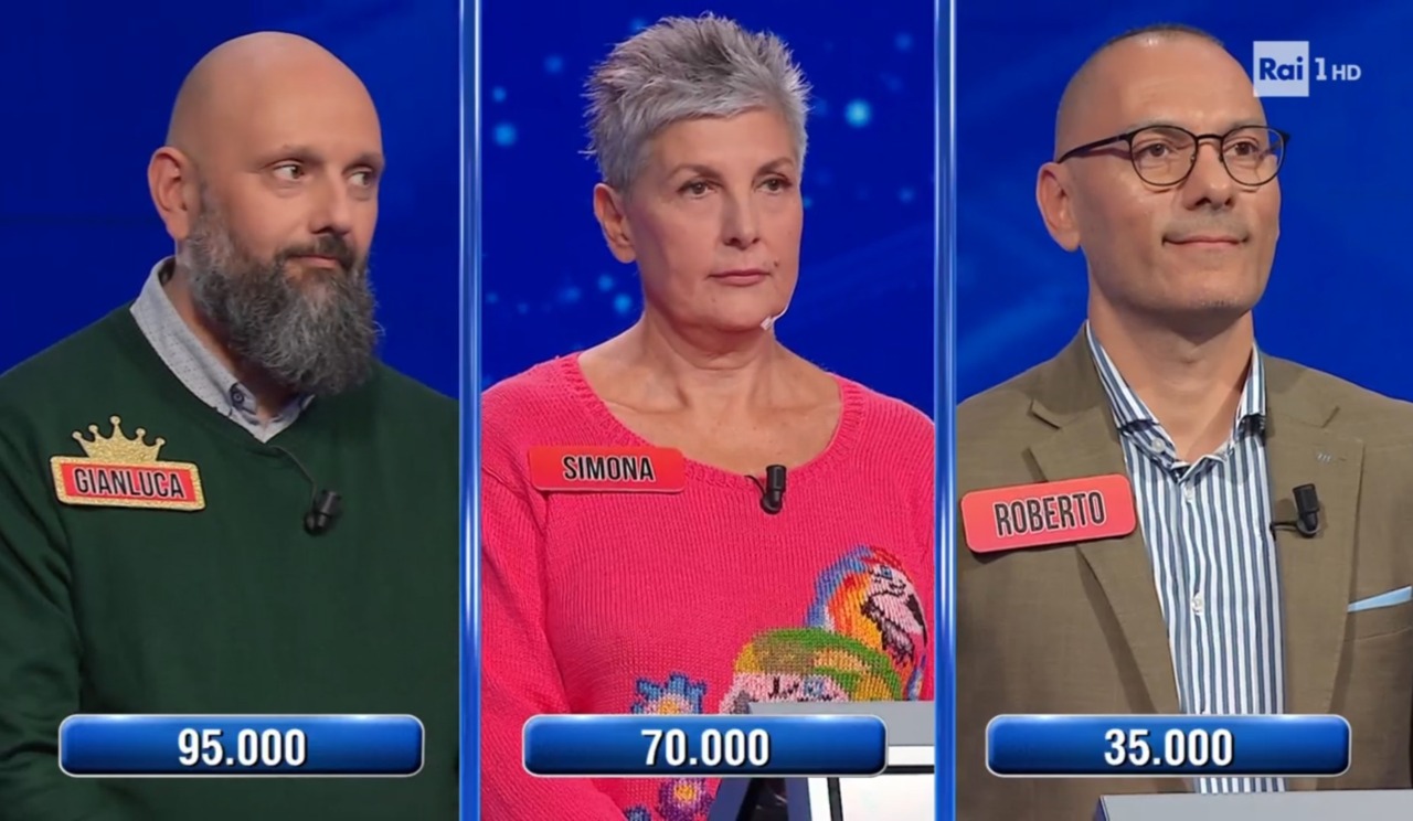 Nonostante le difficoltà, Simona ha poi sfidato l’ex campione: una sfida di 100 secondi che determina la giocata successiva tramite la mano mantenuta dal concorrente rispondendo correttamente alle domande poste dal conduttore. Allo scoccare del termine dei 100 secondi, Simona si è quindi aggiudicata la sua partecipazione al gioco finale, diventando la nuova campionessa della serata.